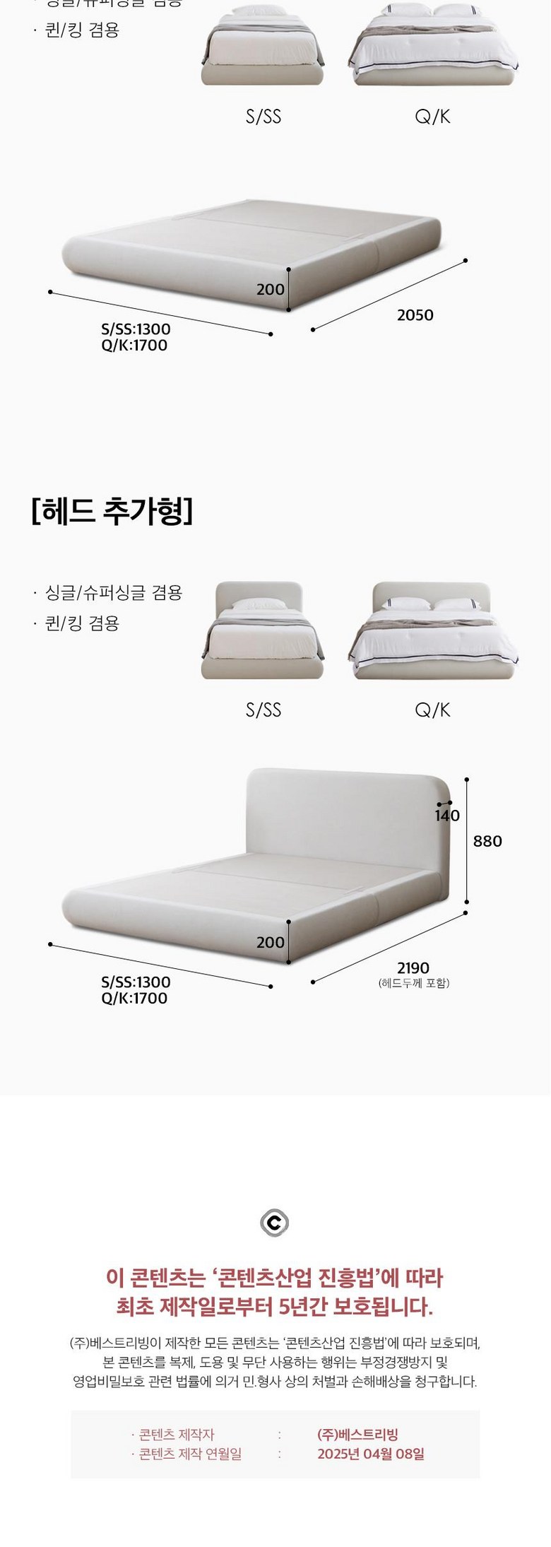 - 사이즈: 1700*2050*200mm