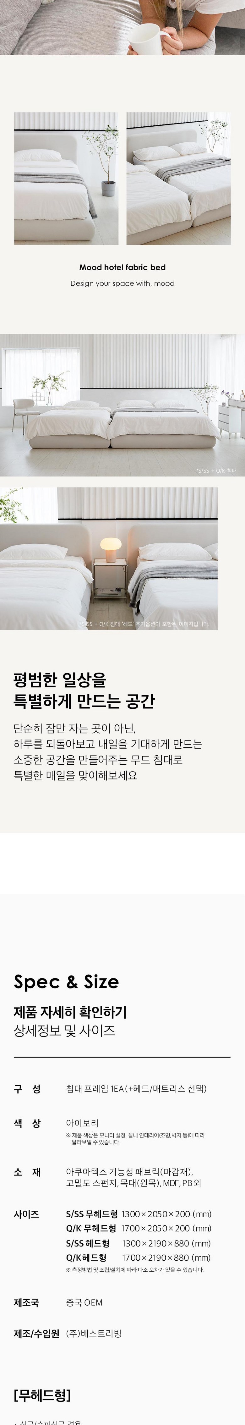 | 색상 | 아이보리 | 구성품 | 침대프레임 |