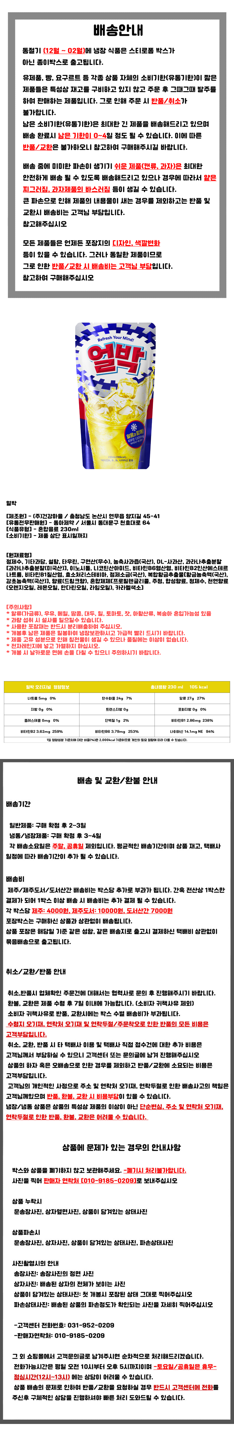 | 생산자 및 소재지 | 상품 상세페이지 참조 | 제조연월일, 소비기한 또는 품질유지기한 | 상품 상세페이지 참조 |