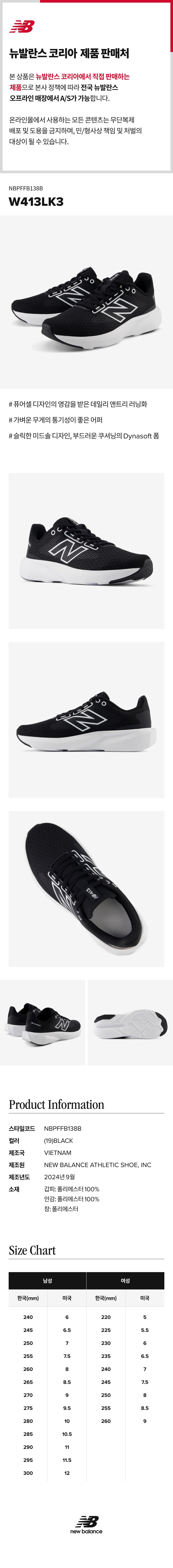 | 치수 | 컨텐츠 참조 | 제조자(수입자) | New Balance Athletic Shoe, INC / (주)이랜드월드뉴발란스사업부 |