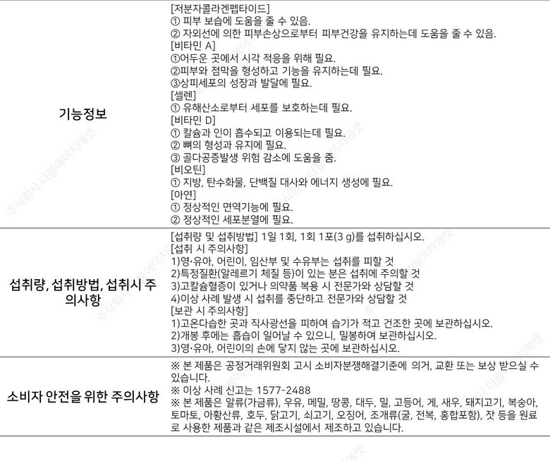 | 포장단위별 내용물의 용량(중량), 수량 | 상품 상세페이지 참조 | 원재료명 및 함량 | 상품 상세페이지 참조 |
