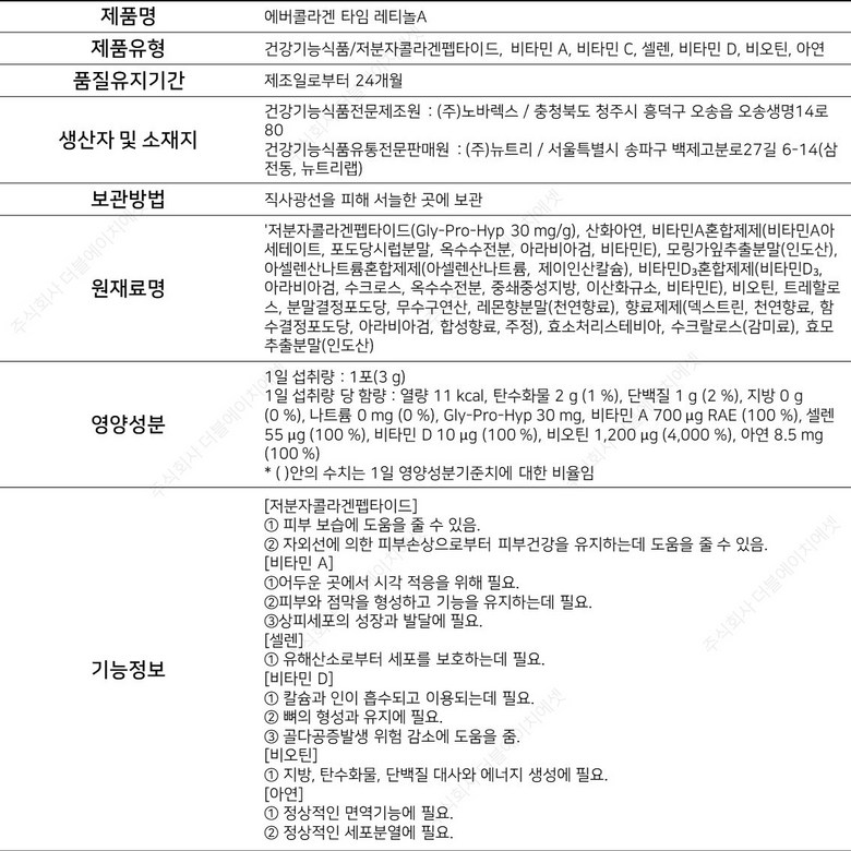 | 생산자 및 소재지 | 상품 상세페이지 참조 | 제조연월일, 소비기한 또는 품질유지기한 | 상품 상세페이지 참조 |