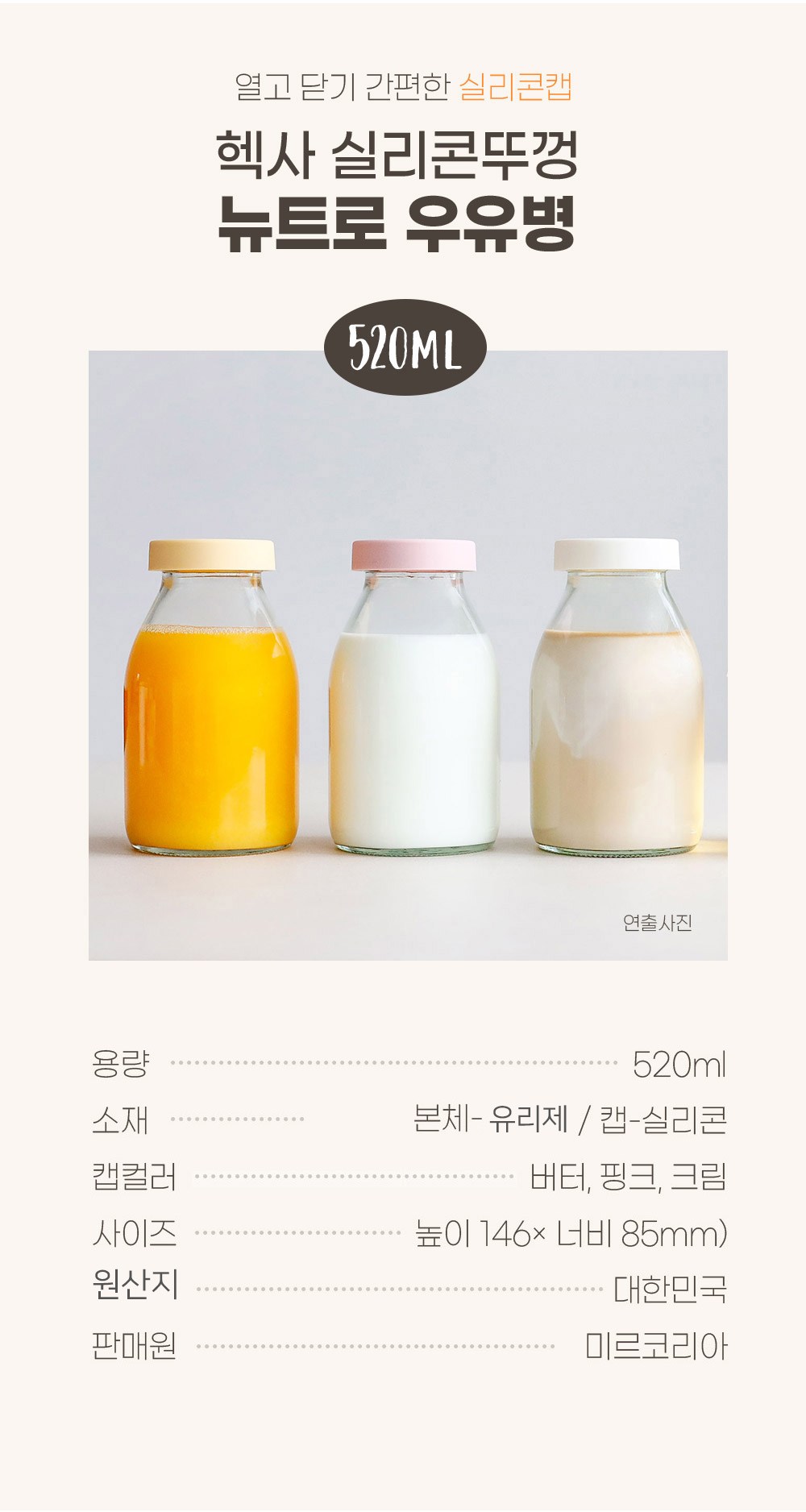 | 구성품 | 우유병 520ml 4개 (크림) | 크기 | 컨텐츠 참조 |