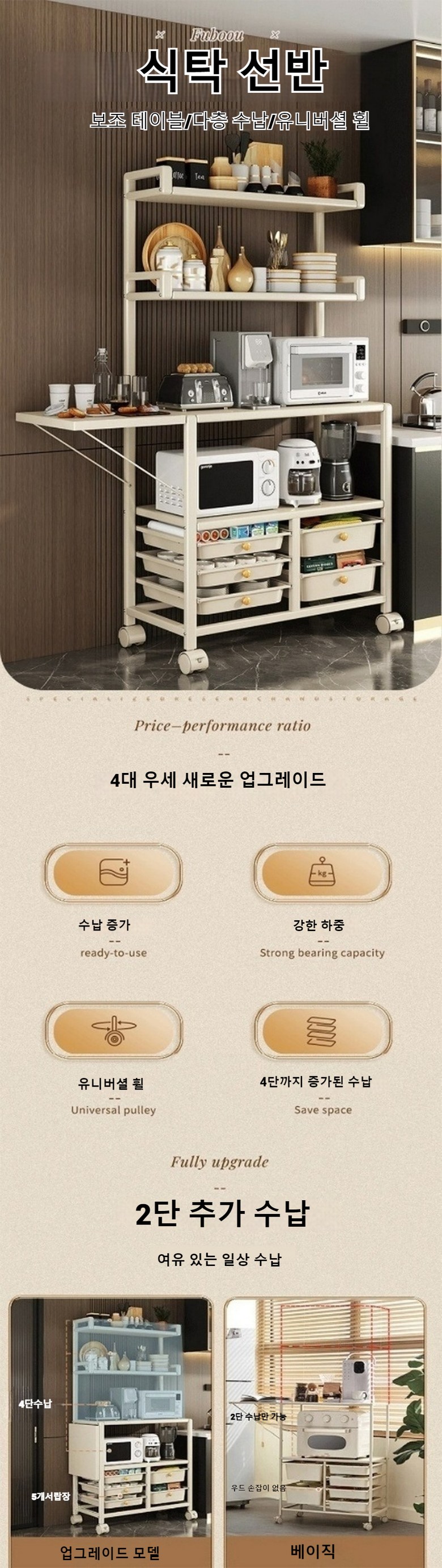 BangPang 확장형 이동식 전자레인지선반 밥솥선반 미니조리대