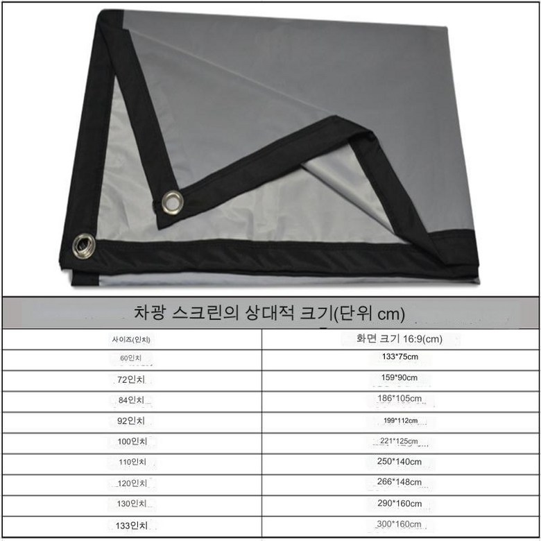 Veidadz 프로젝션 스크린은 고객 요구 사항을 충족하기 위해 60,72,84,92,100,110,120,130,133인치의 9가지 크기로 제공됩니다.