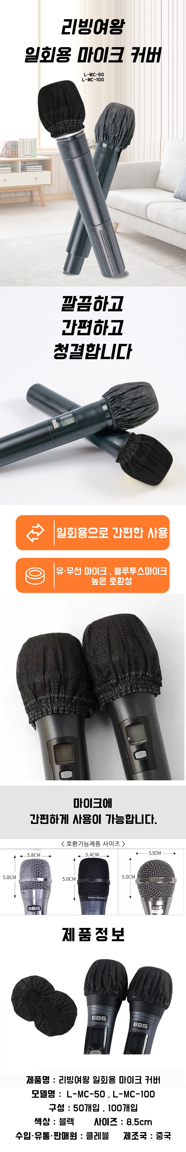 | 품명 및 모델명 | 리빙여왕 일회용 마이크 커버 50개입 | KC 인증정보 | 해당없음 |