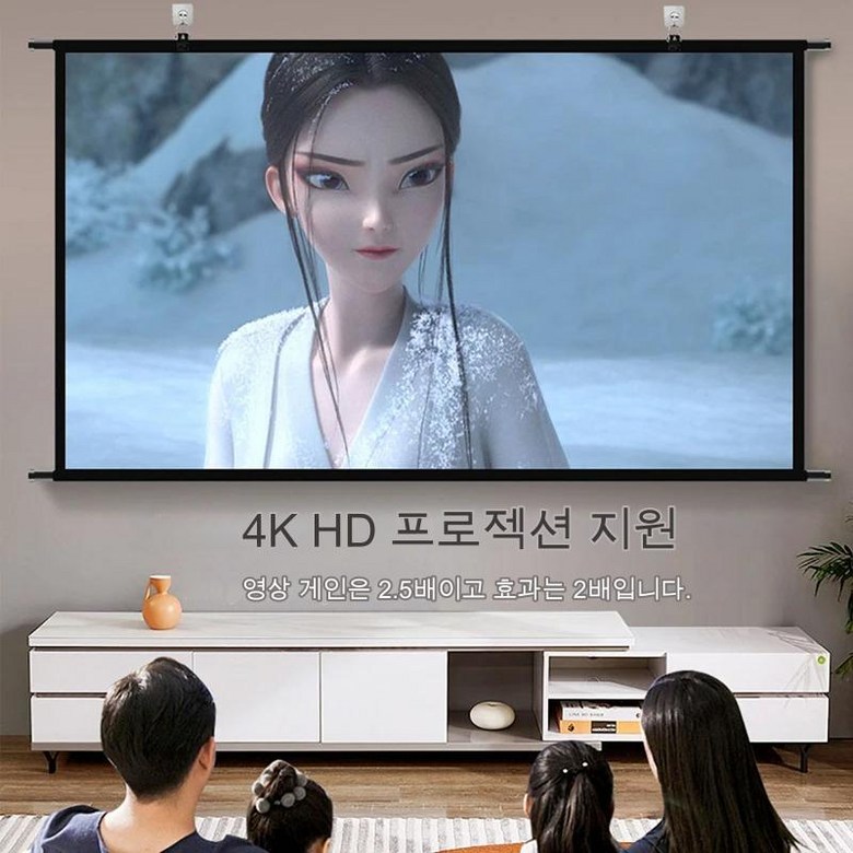 두꺼운 소재로 전면/후면 투사 모두 지원하며, 먼지는 젖은 천으로 간단히 닦을 수 있습니다.