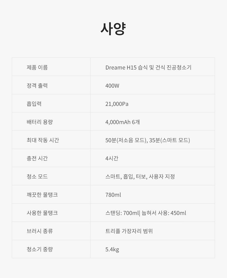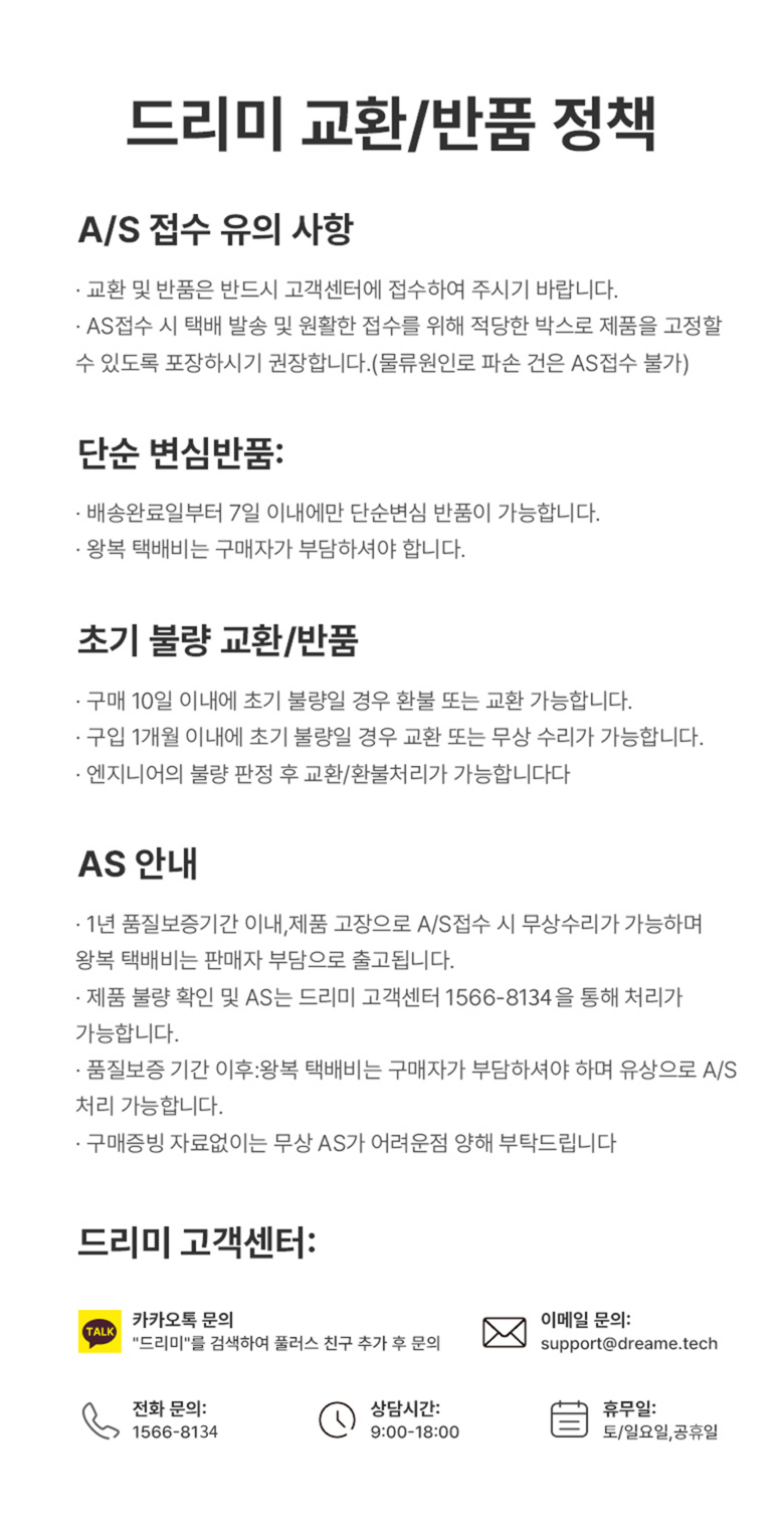 | 제조국(원산지) | 중국 | 제조자(수입자) | 드리미 코리아 테크놀로지 주식회사 |