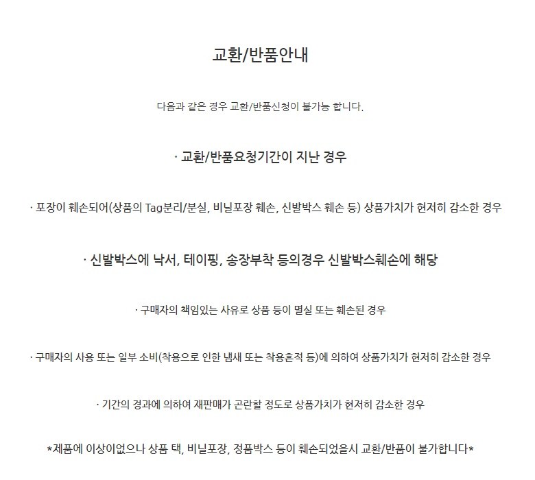 - ㆍ교환/반품에 관한 일반적인 사항은 판매자가 제시사항보다 관계법령이 우선합니다.