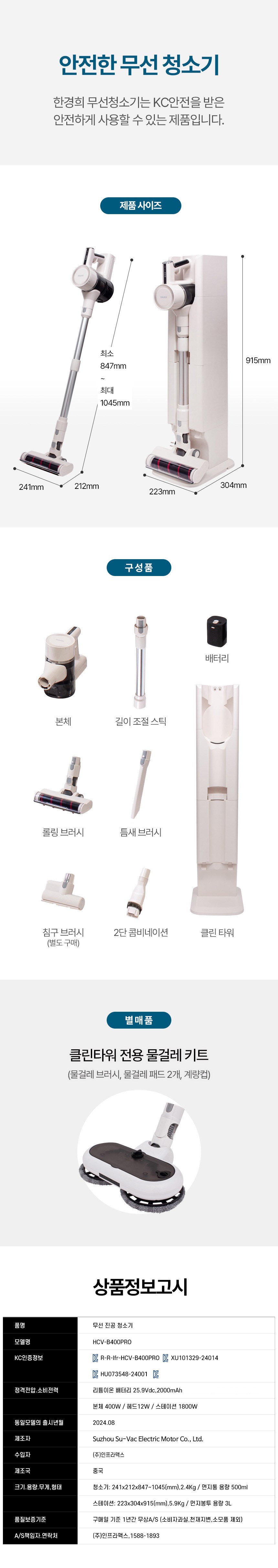 | 품명 및 모델명 | 무선진공청소기 / HCV-B400 PRO | KC 인증정보 | 본품, 타워: R-R-Ifr-HCV-B400PRO / 전지: XU101329-24014 / 타워: HU073548-24001 |
