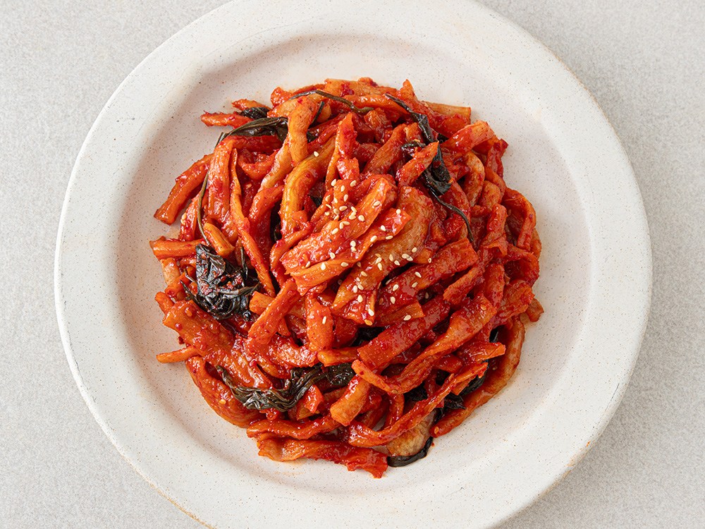 꼬들꼬들한 식감과, 매콤한 감칠맛에 자꾸만 손이 가는 무말랭이무침이에요. 번거로운 조리 과정 없이 바로 식탁에 올릴 수 있어 간편하죠. 다른 반찬 필요 없이 무말랭이무침 하나만으로 밥 한 공기를 비울 수 있답니다.