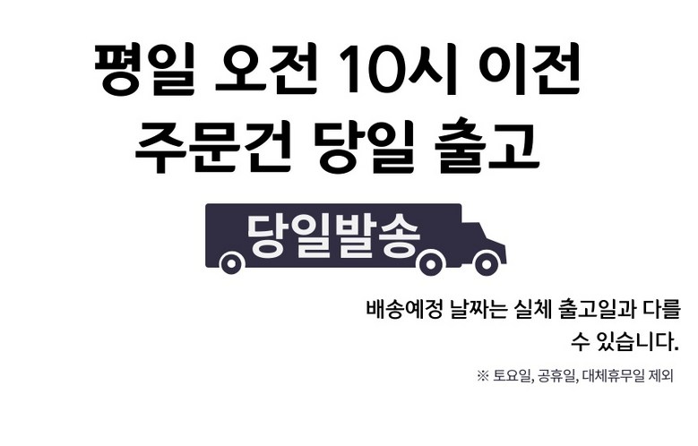 | 배송기간 | ㆍ도서산간 지역 등은 배송에 3-5일이 더 소요될 수 있습니다. - 천재지변, 물량 수급 변동 등 예외적인 사유 발생 시, 다소 지연될 수 있는 점 양해 부탁드립니다. | ||