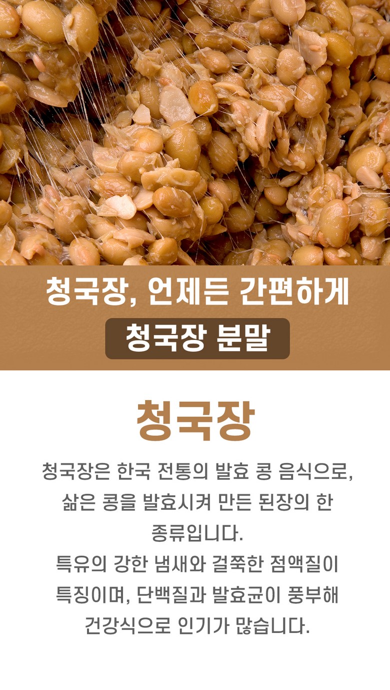 | 제품명 | 청국장 가루 | 식품의 유형 | 청국장 |