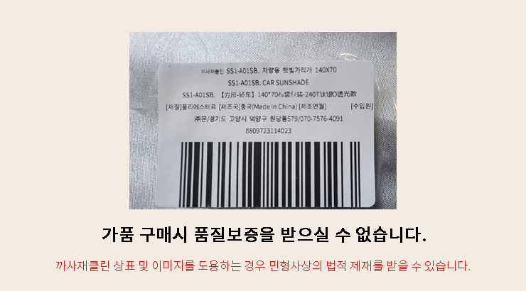 - ㆍ모니터 해상도의 차이로 인해 색상이나 이미지가 실제와 달라, 고객이 단순 변심으로 교환/반품을 무료로 요청하는 경우