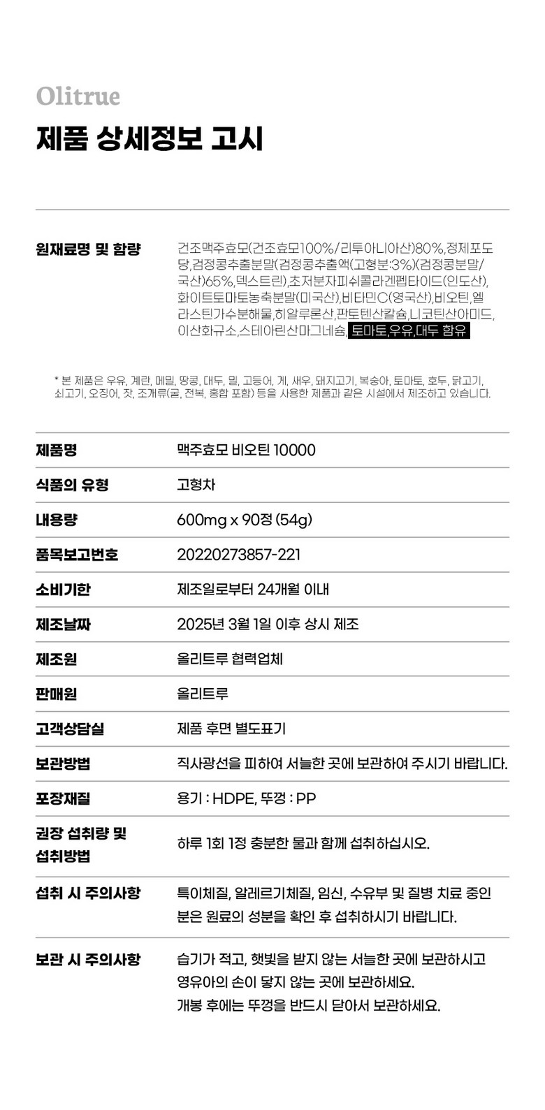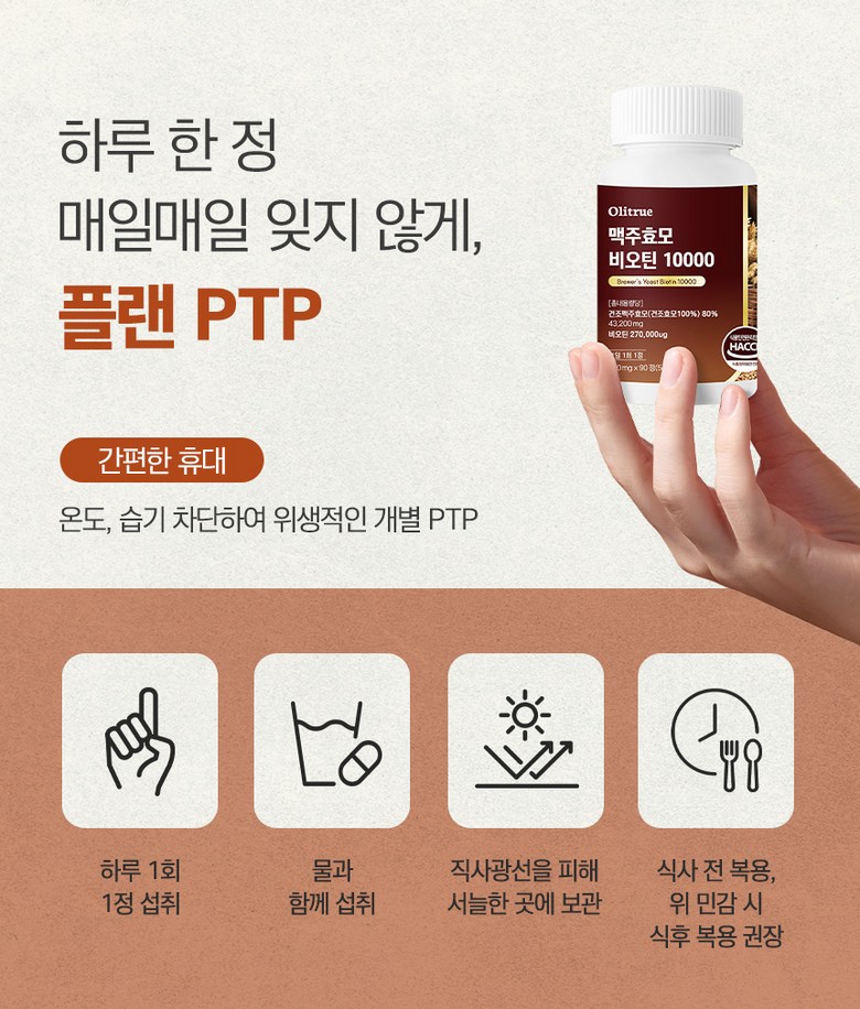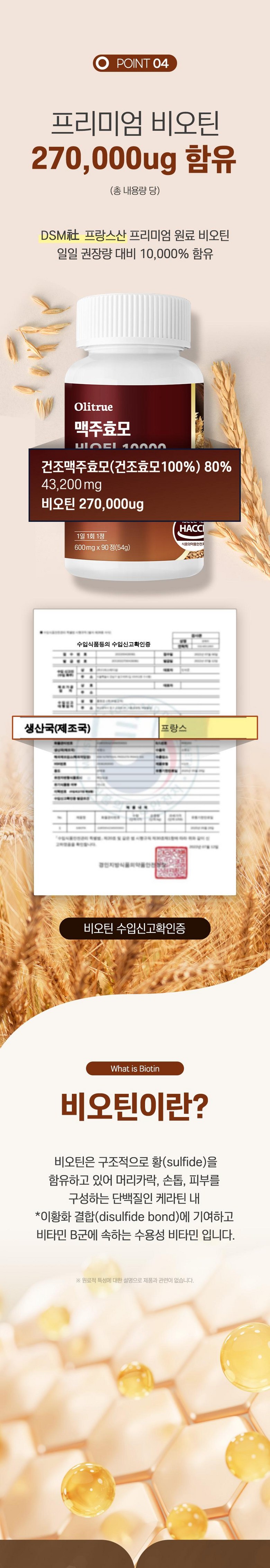 | 제품명 | 올리트루 맥주효모 비오틴 10000 | 제조업소의 명칭과 소재지 | 올리트루 협력사 |