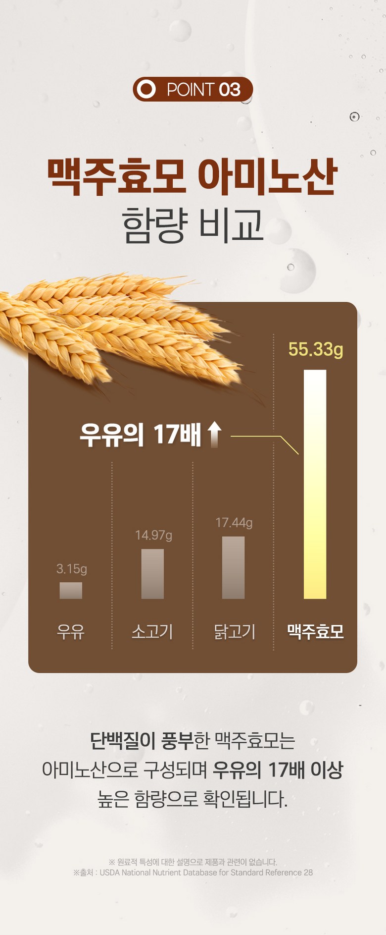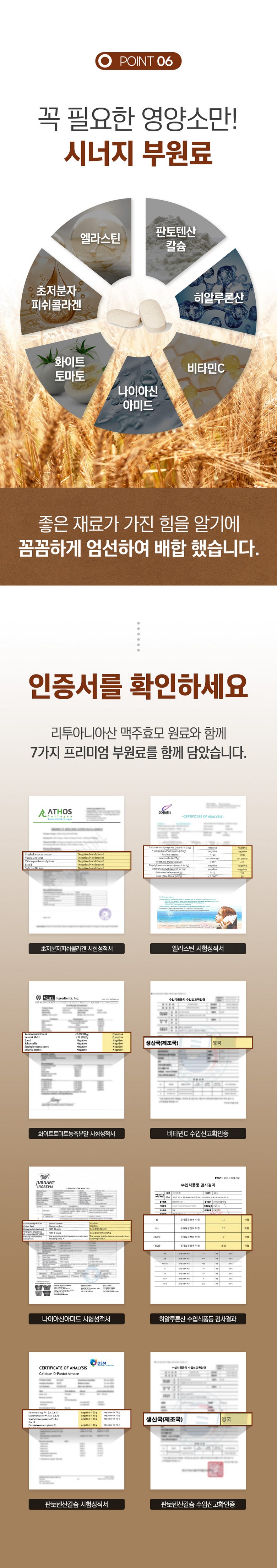 | 원료명 및 함량 | 건조맥주효모(건조효모100%리투아니아산)80%,정제포도당,검정콩추출분말(검정콩추출액(고형분:3%)(검정콩분말/국산)65%,덱스트린),초저분자피쉬콜라겐펩타이드(인도산),화이트토마토농축분말(미국산),비타민C(영국산),비오틴,엘라스틴가수분해물,히알루론산,판토텐산칼슘,니코틴산아미드,이산화규소,스테아린산마그네슘,토마토,우유,대두 함유 | 영양정보 | 건조맥주효모(건조효모100%리투아니아산)80%,정제포도당,검정콩추출분말(검정콩추출액(고형분:3%)(검정콩분말/국산)65%,덱스트린),초저분자피쉬콜라겐펩타이드(인도산),화이트토마토농축분말(미국산),비타민C(영국산),비오틴,엘라스틴가수분해물,히알루론산,판토텐산칼슘,니코틴산아미드,이산화규소,스테아린산마그네슘,토마토,우유,대두 함유 |