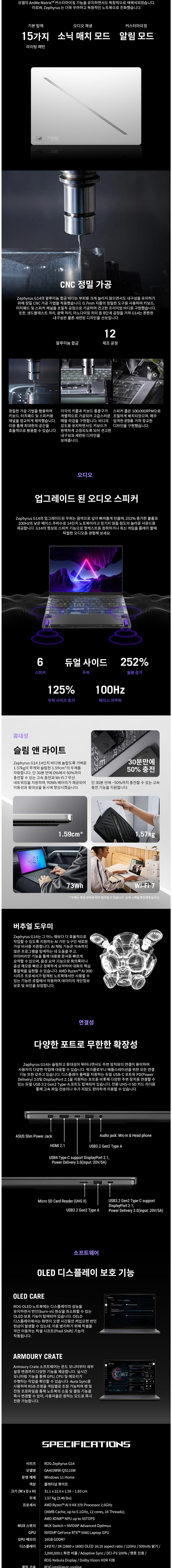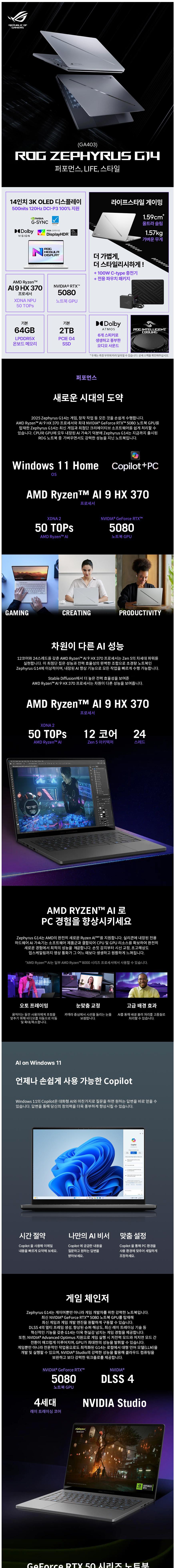 에이수스 2025 ROG 제피러스 G14 라이젠9 지포스 RTX 5080플래티넘 화이트 · 2TB · 64GB · WIN11 Home · GA403WW-QS115W