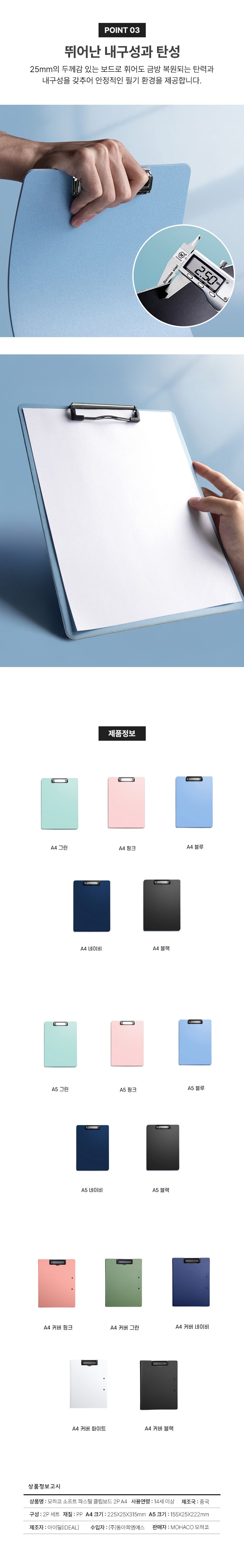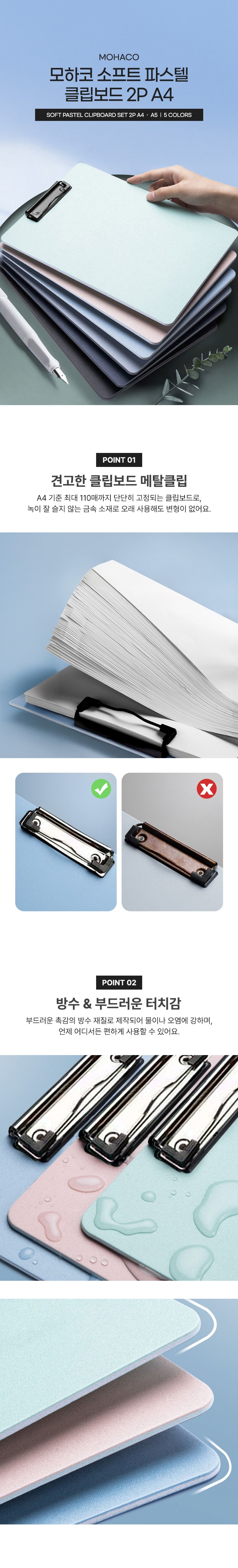 | 품명 및 모델명 | 모하코 소프트 파스텔 클립보드 2P A4 핑크 | 인증/허가 사항 | 해당없음(14세이상) |