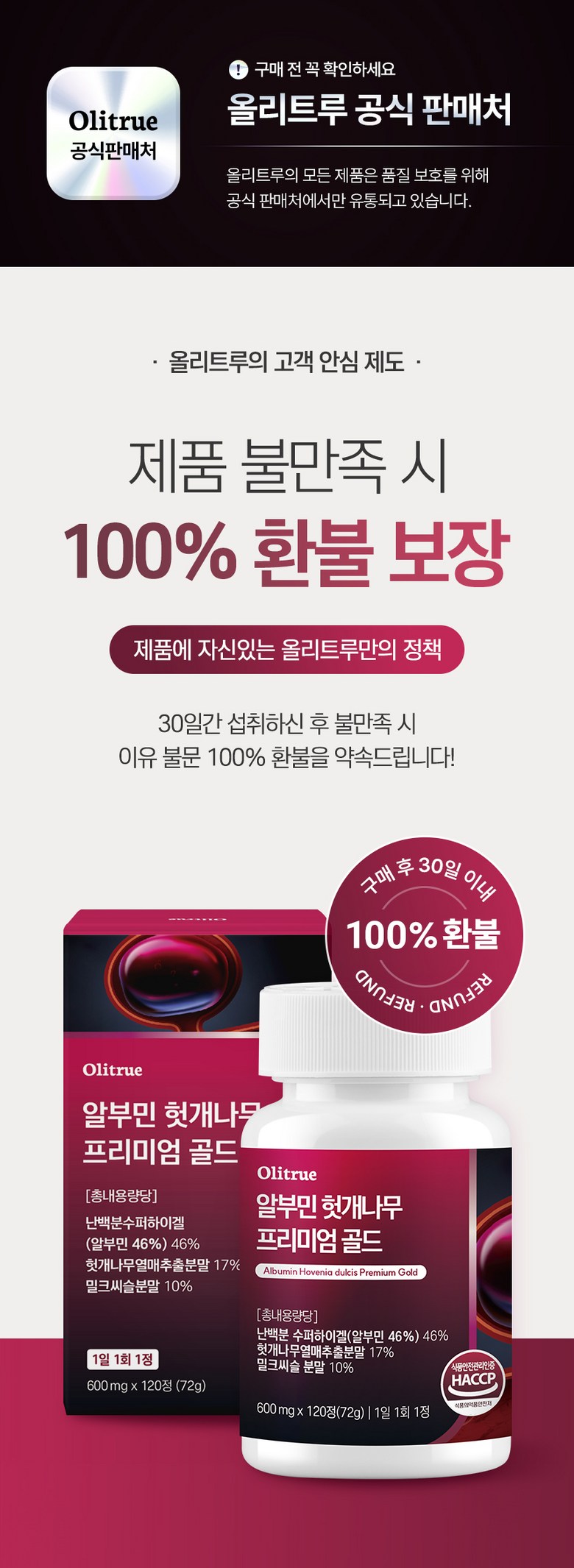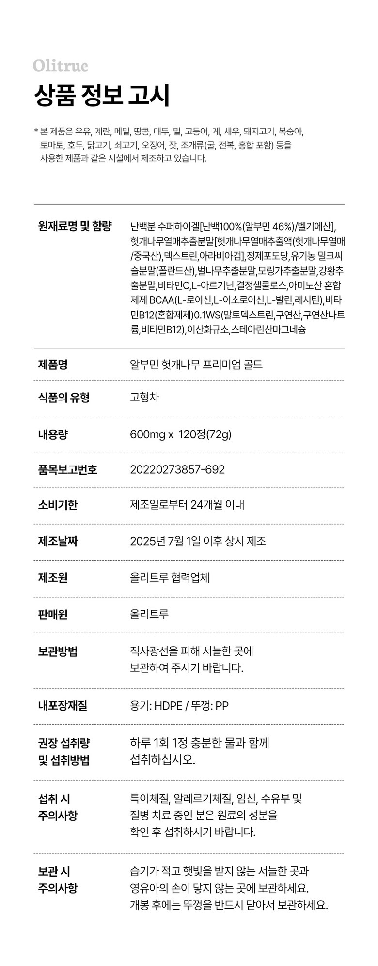 | 제품명 | 올리트루 알부민 헛개나무 프리미엄 골드 | 제조업소의 명칭과 소재지 | 올리트루 협력사 |