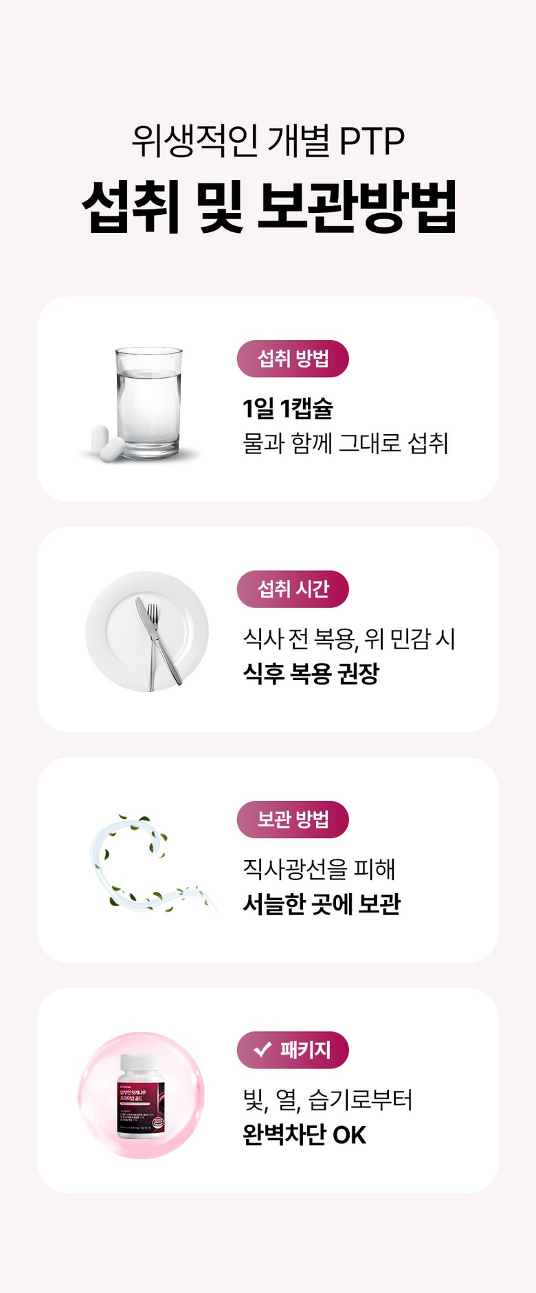 | 소비기한 및 보관방법 | 직사광선을 피하여 서늘한 곳에 보관하여 주시기 바랍니다 | 포장단위별 내용물의 용량(중량), 수량 | 1개 120정 (4개월분) |