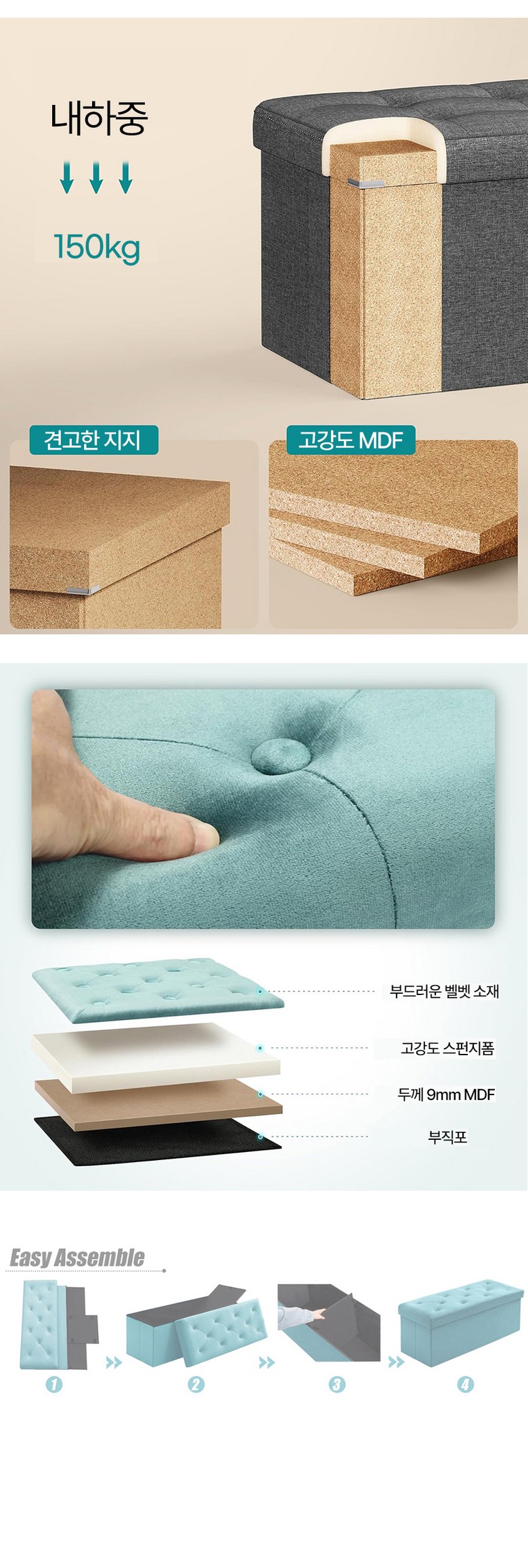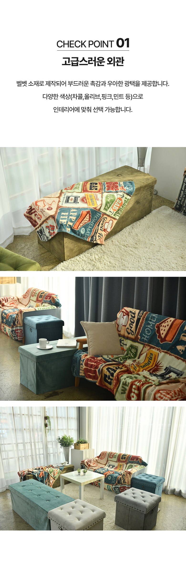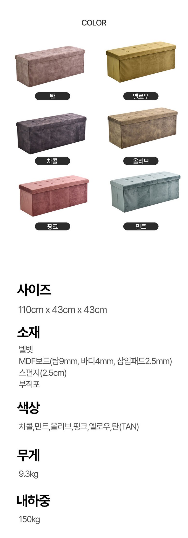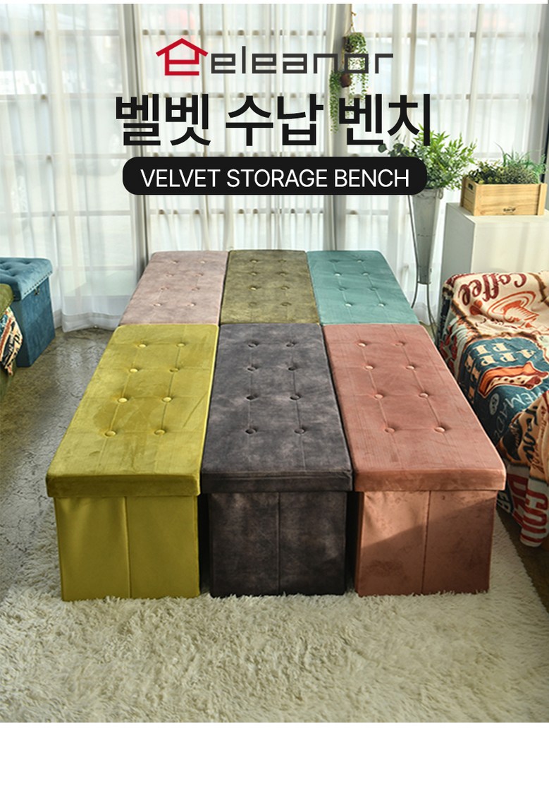 엘리나 벨벳 수납벤치 대형 패브릭 사각 의자 소파 공간박스 접이식 정리함, 올리브, 1개