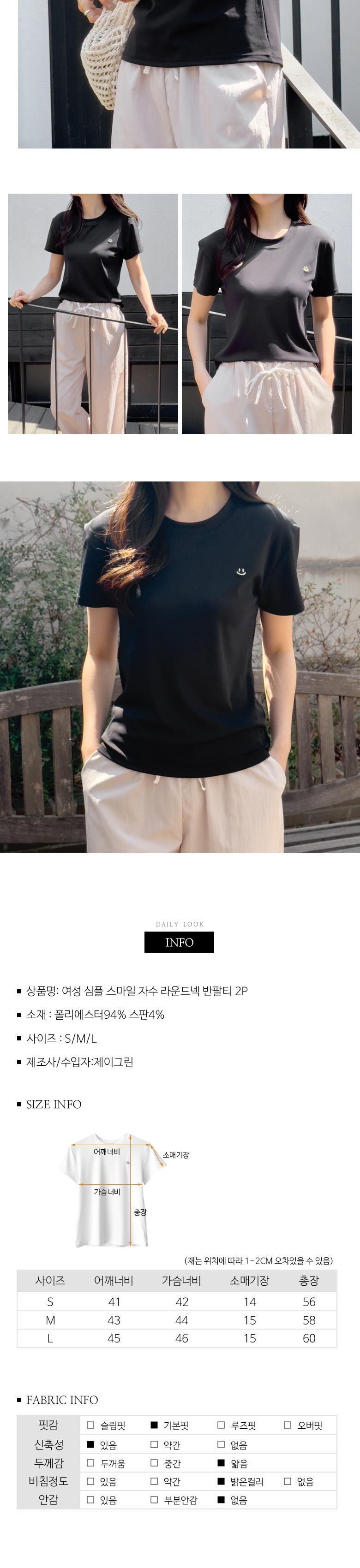 - 소매 길이: 반소매(어깨~팔꿈치 길이)