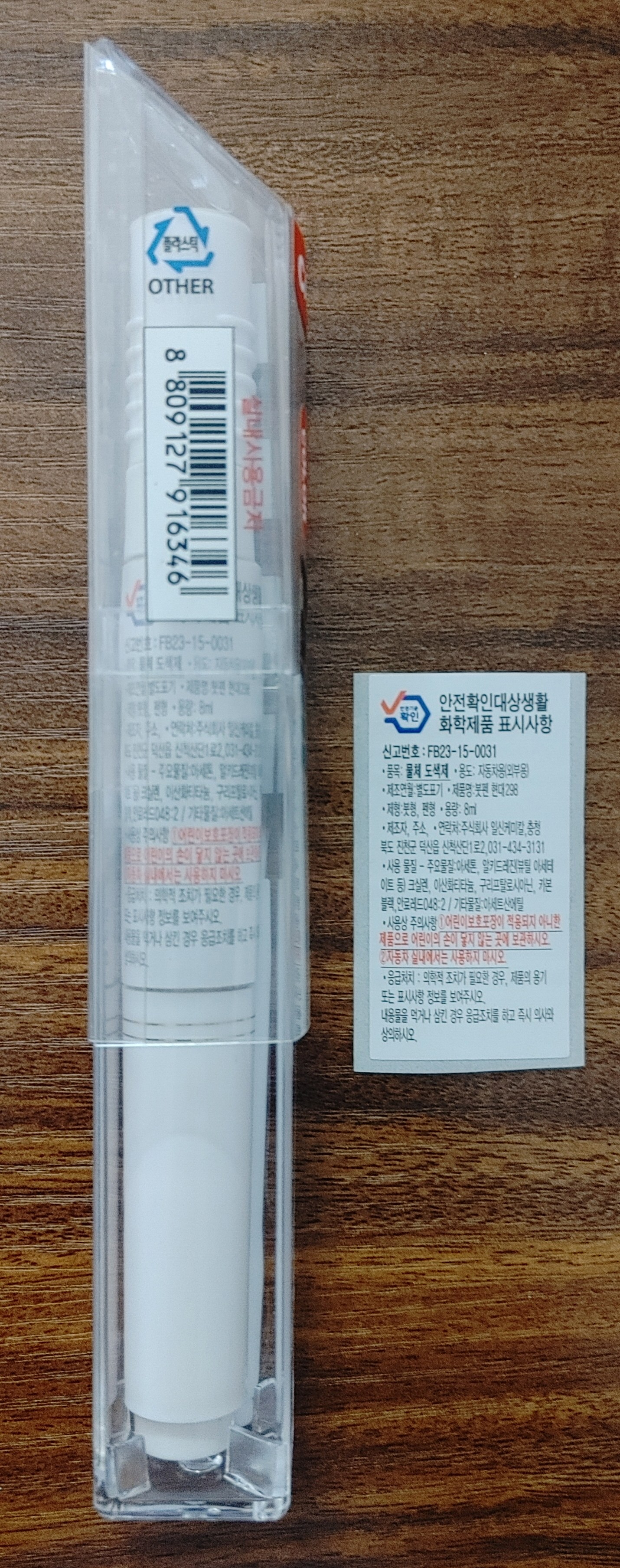 | 품목 및 제품명 | 물체 도색제/붓펜 현대 298 | 용도(표백제의 경우 계열을 함께표시) 및 제형 | 자동차용(외부용)/펜형,붓형 |