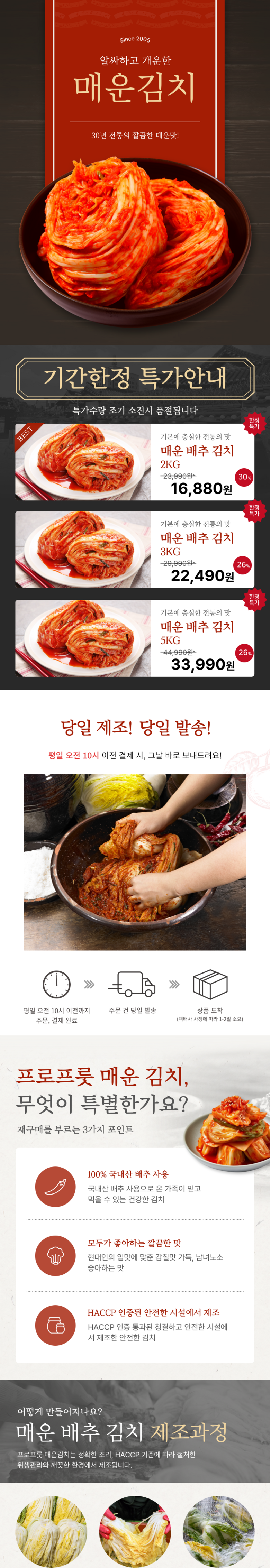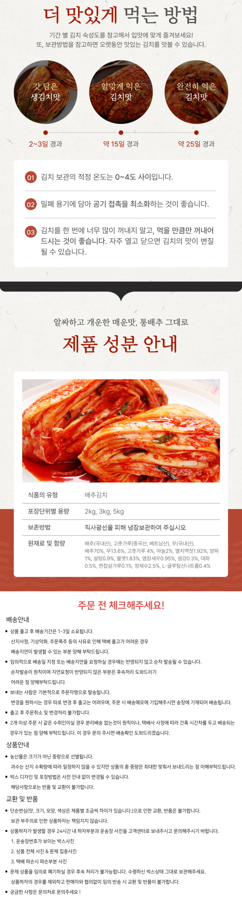 | 품목 또는 명칭 | 매운김치 | 포장단위별 내용물의 용량(중량),수량,크기 | 상품 상세페이지 참조 |