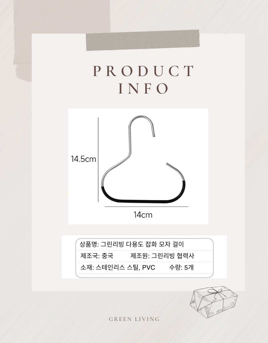 | 품명 및 모델명 | 그린리빙 다용도 잡화 모자 걸이 | 인증/허가 사항 | 해당없음 |