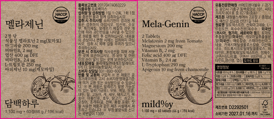 | 생산자 및 소재지 | 컨텐츠 참조 | 제조연월일, 소비기한 또는 품질유지기한 | 소비기한(또는 유통기한) : 2027년 01월 16일 이거나 그 이후인 상품 제조년월일 : 2025년 01월 17일 이후인 제조상품 |