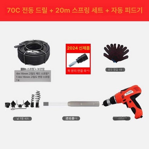 하수구 뚫는기계 뚜러뻥 막힘 고출력 배수구 뚫는 드릴 스프링 하수도 뚫어뻥 변기막힘