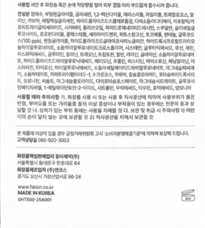 | 화장품제조업자, 화장품책임판매업자 및 맞춤형화장품판매업자 | 컨텐츠 참조 | 제조국 | 컨텐츠 참조 |
