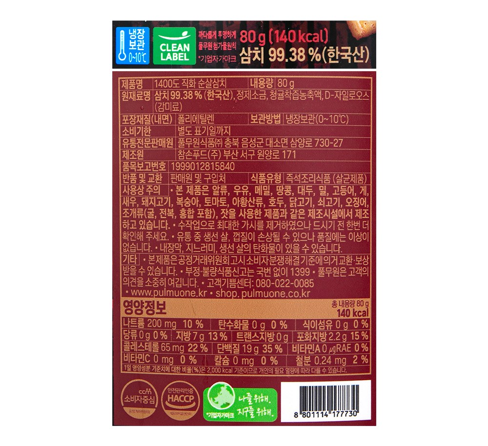 뼈와 가시를 제거해 간편하게 드실 수 있는 삼치예요. 직화로 구워 비린 맛을 줄이고 풍미와 감칠맛은 더했어요. 전자레인지, 에어프라이어로 조리해주면 집에서도 기름, 냄새 걱정 없이 삼치구이를 즐길 수 있답니다.