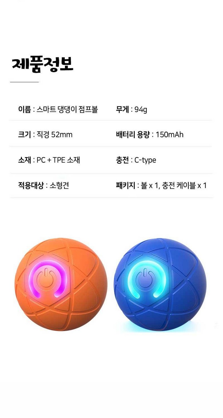 | 품명 및 모델명 | 점프볼 | KC 인증정보 | R-R-37A-pet-toy / 배터리 YU101089-19001B |