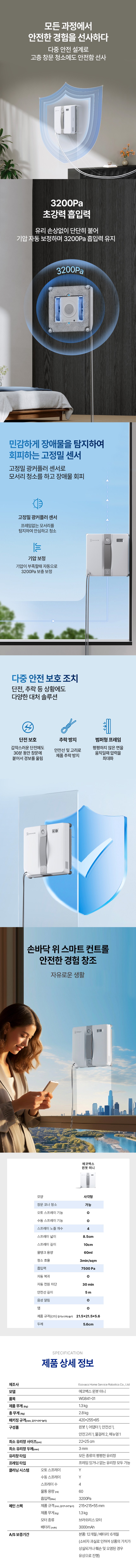 | 품명 및 모델명 | 에코백스 윈봇 미니 창문 로봇청소기 / WG841-01 | KC 인증정보 | 본품: R-R-Eh5-WG841-01 / 어댑터: HU10379-16022B, MSIP-REM-GVE-GM95-240400-D |