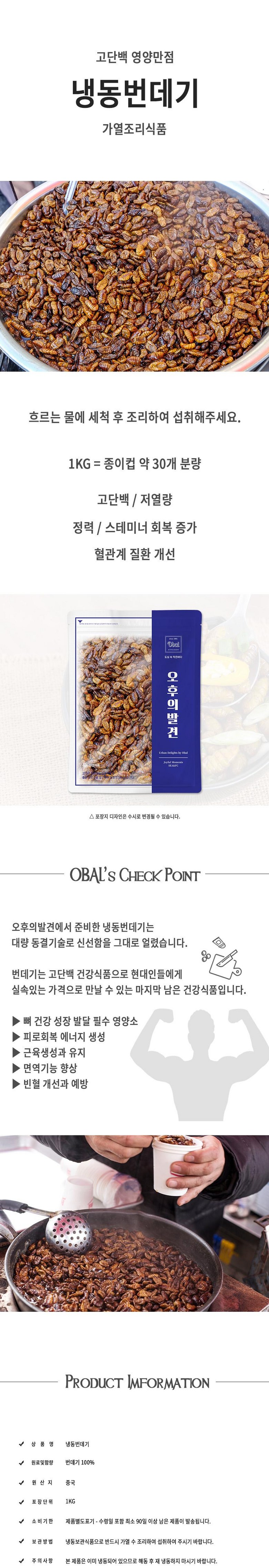 | 품목 또는 명칭 | 냉동번데기 | 포장단위별 내용물의 용량(중량),수량,크기 | 1Kg, 1개 |