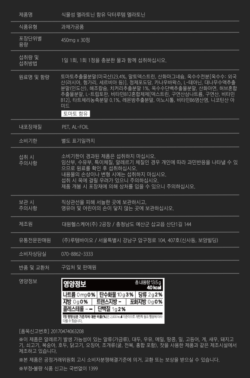 | 포장단위별 내용물의 용량(중량), 수량 | 컨텐츠 참조 | 원재료명 및 함량 | 컨텐츠 참조 |