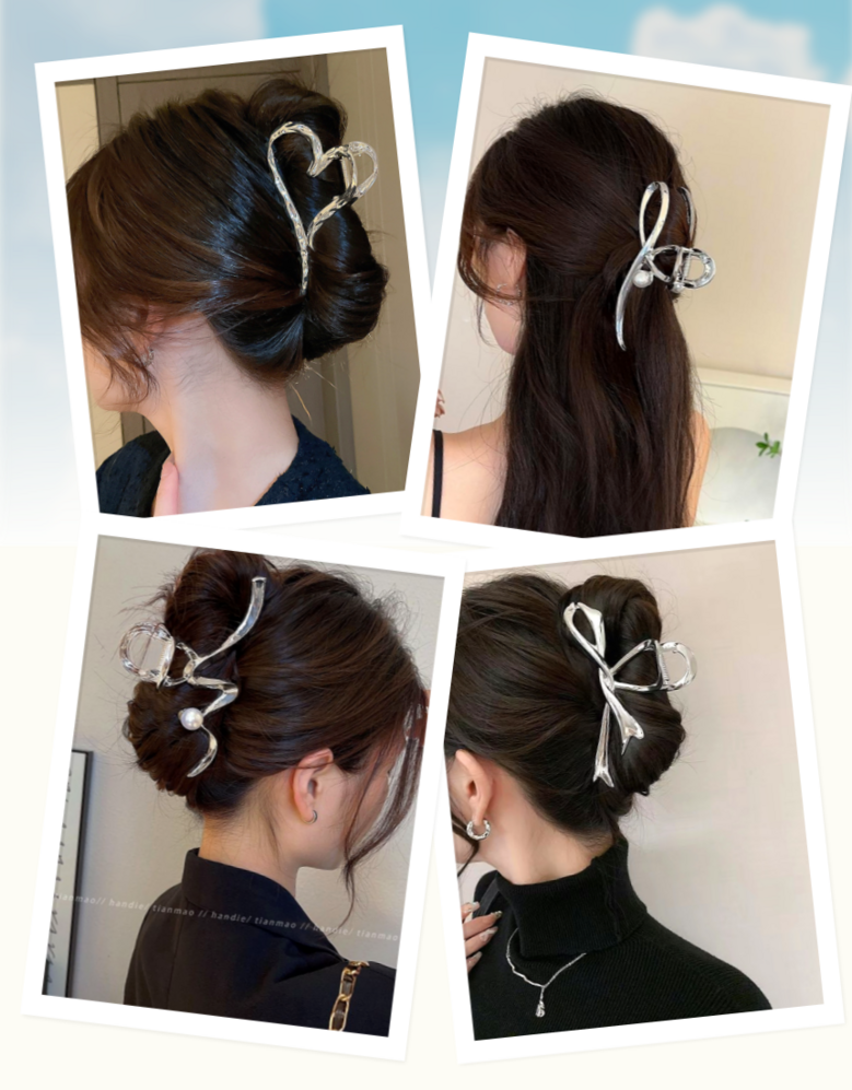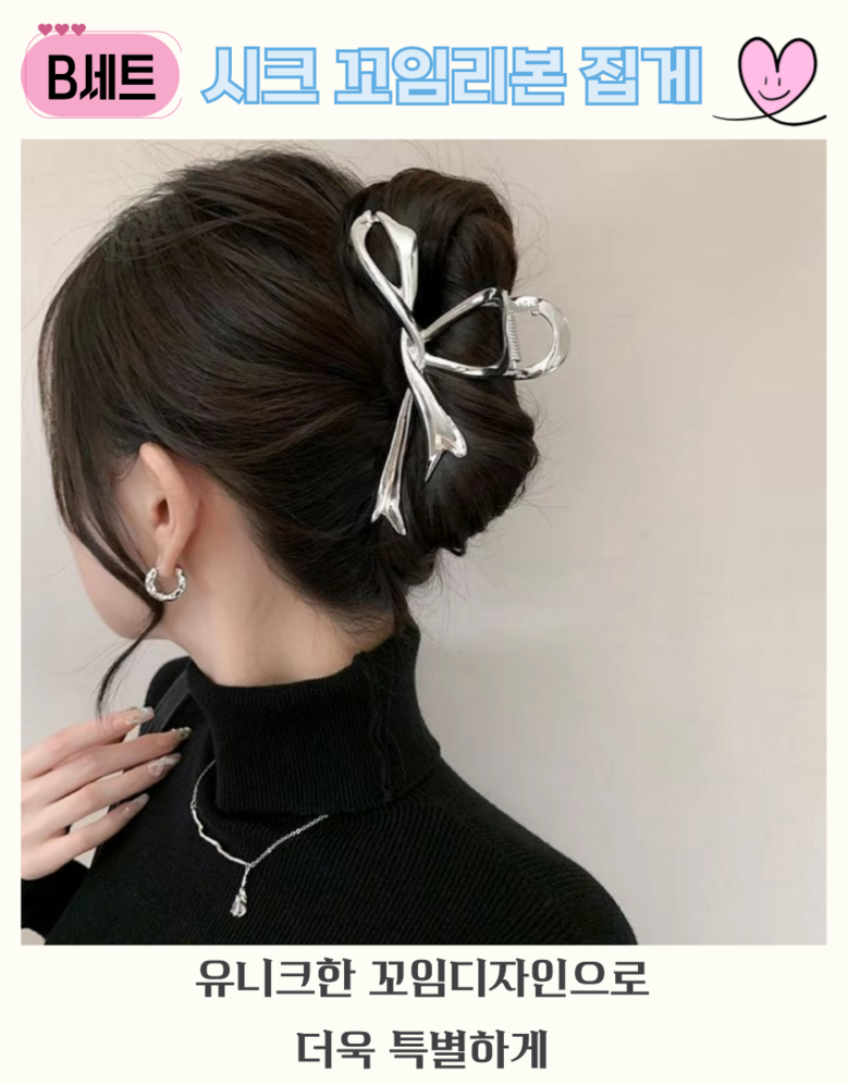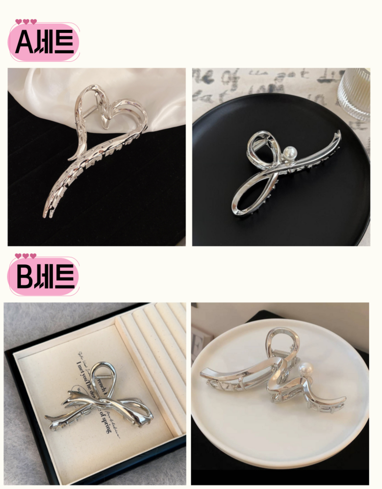 채로스 메탈 빅사이즈 실버 꼬임 리본 집게핀 2개 세트
