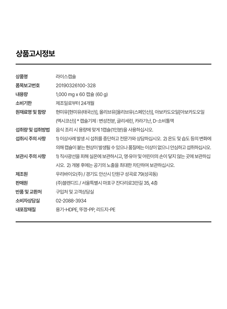 | 제조연월일, 소비기한 또는 품질유지기한 | 상품 상세페이지 참조 | 세부 품목군별 표시사항 | 상품 상세페이지 참조 |
