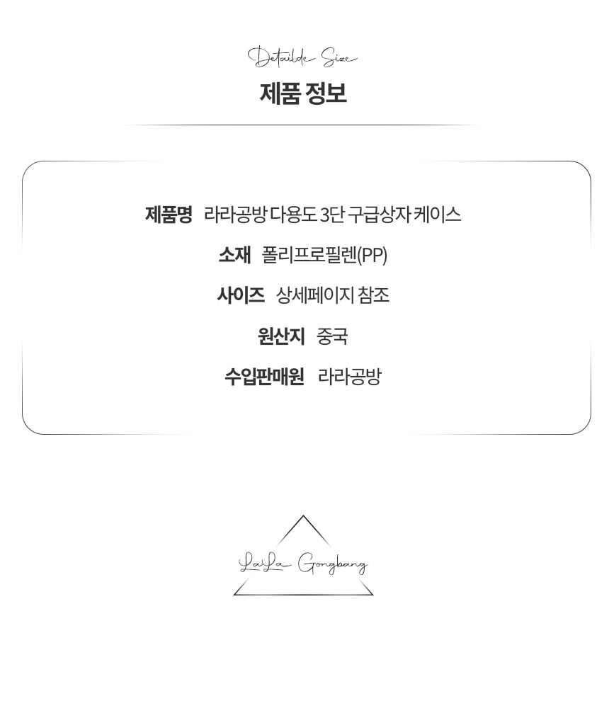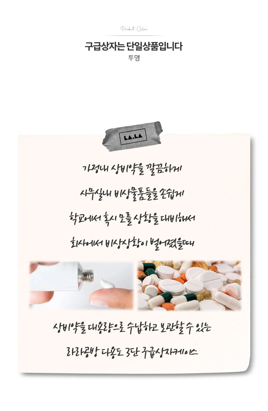 | 품명 및 모델명 | 라라공방 다용도 3단 구급상자 케이스 | 인증/허가 사항 | 해당없음 |