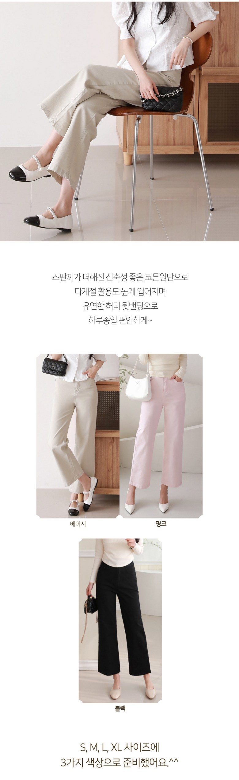 빅빅몰 쫀쫀 스판 뒷밴딩 통일자 얇은 코튼팬츠 여성 면바지