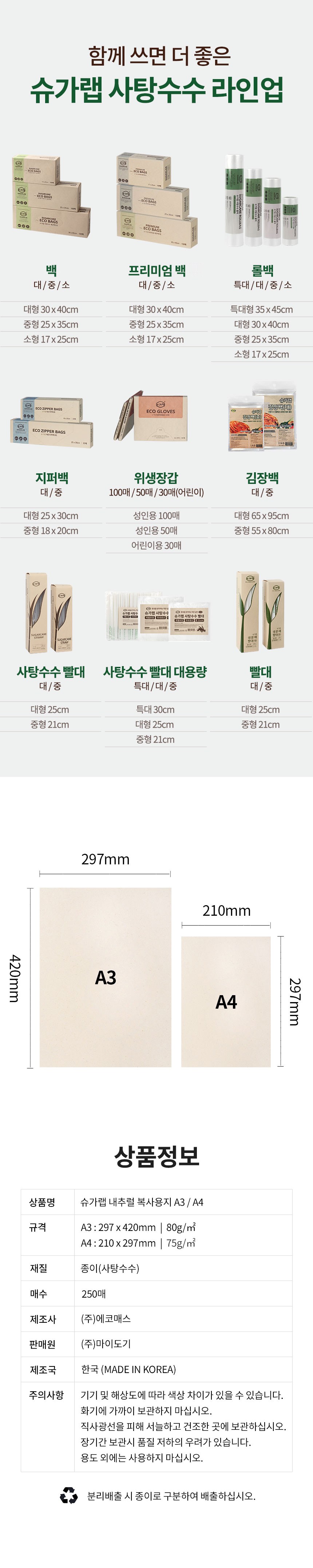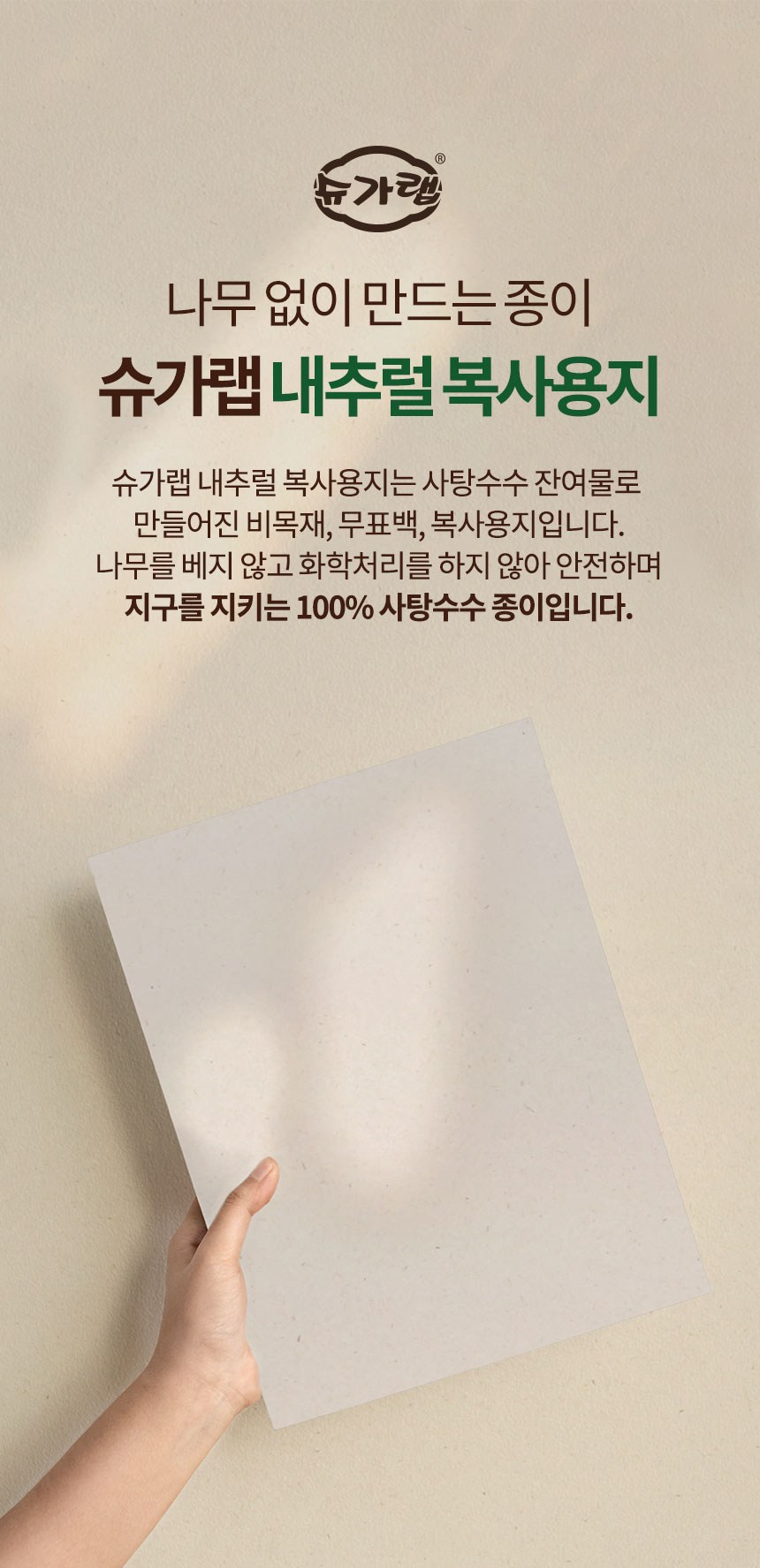 | 품명 및 모델명 | 슈가랩 내추럴 복사용지 A4 | 인증/허가 사항 | 해당없음(14세이상) |