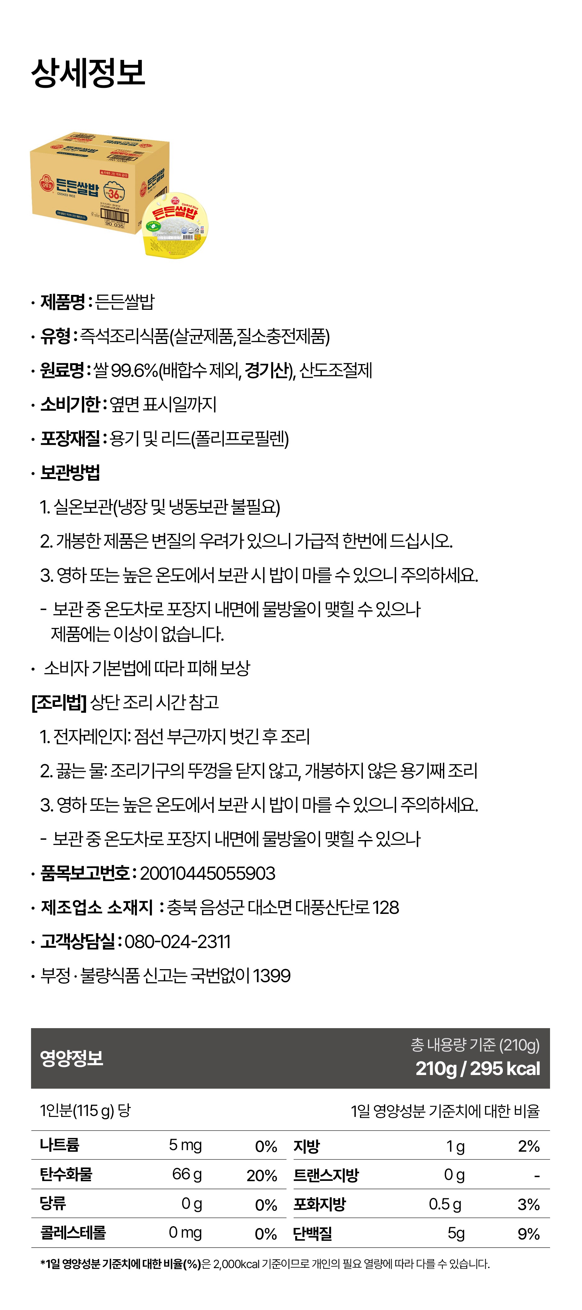 | 제품명 | 든든쌀밥 | 식품의 유형 | 컨텐츠참조 |