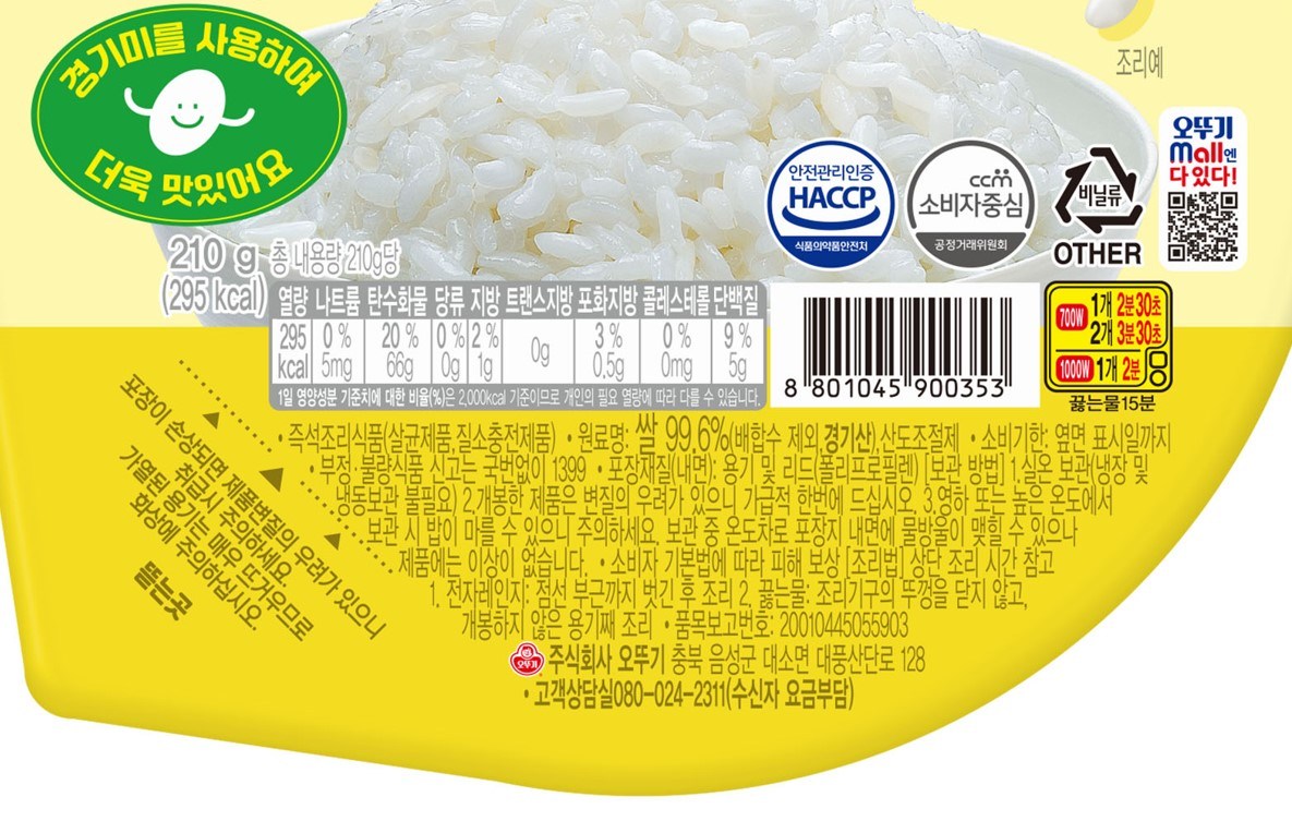 - 즉석밥 크기: 중간공기