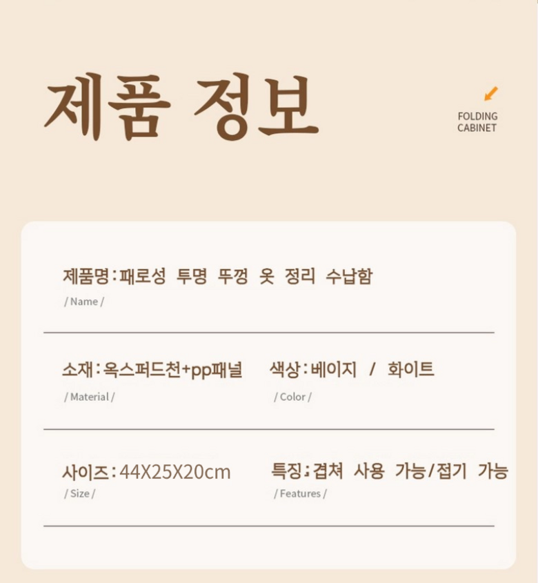 | 품명 및 모델명 | 패로성 옷정리 수납함 | 인증/허가 사항 | 인증 필요 없음 |