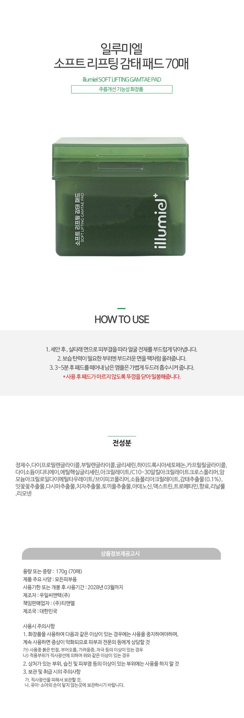 | 화장품제조업자, 화장품책임판매업자 및 맞춤형화장품판매업자 | 상품 상세페이지 참조 | 제조국 | 상품 상세페이지 참조 |