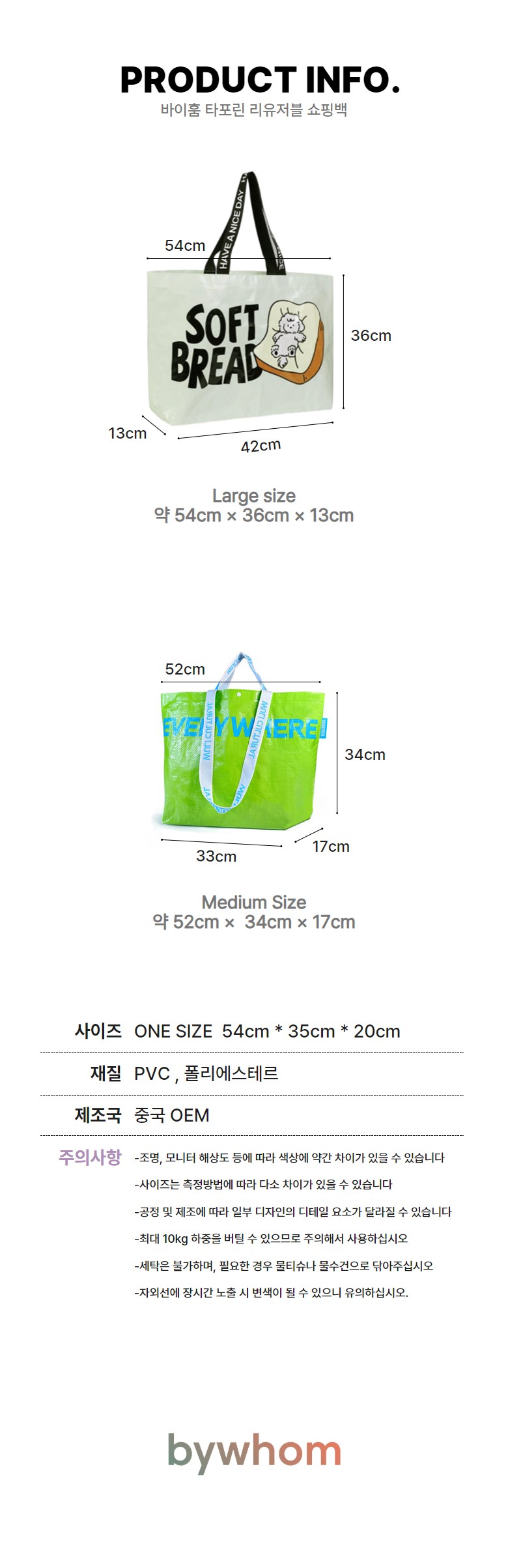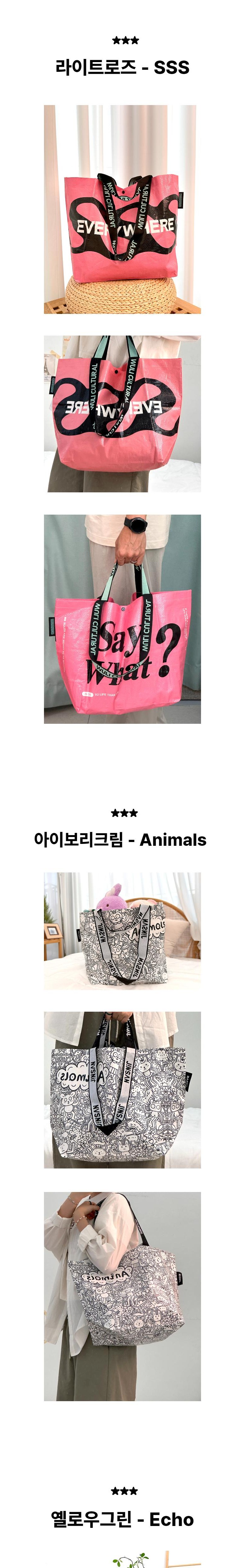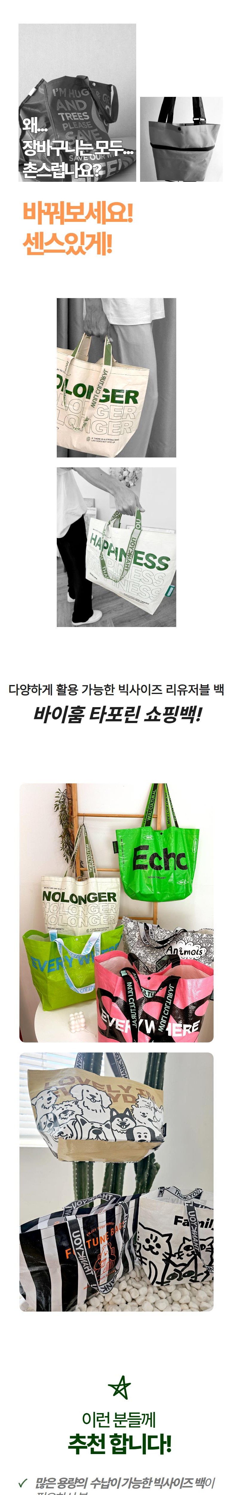 바이훔 타포린 장바구니 리유저블 에코백 타포린 쇼퍼백 멀티백 비닐가방 보조가방, 아이보리크림-Ani..., 1개