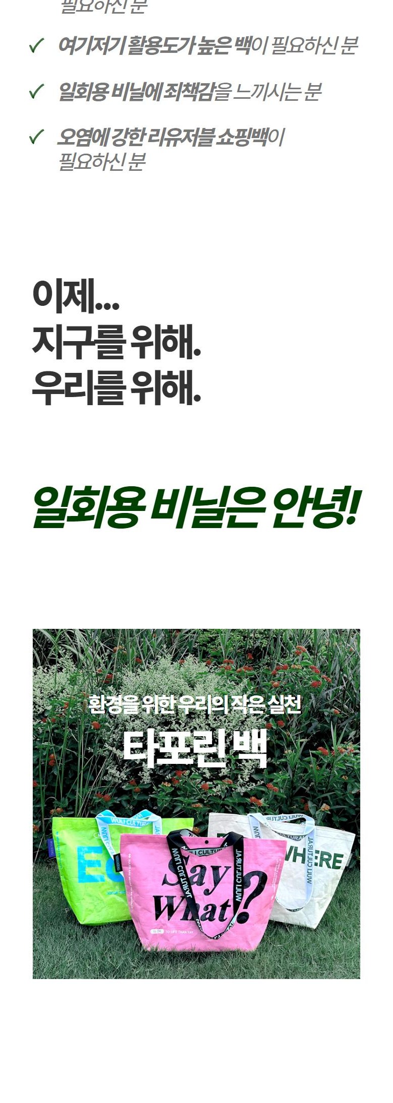 - 장바구니 소재: 타포린