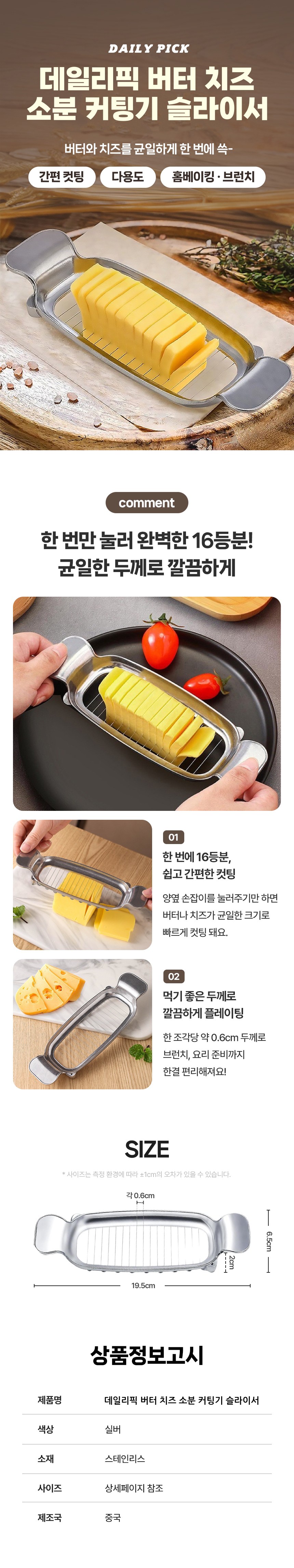 | 품명 및 모델명 | 데일리픽 버터 치즈 소분 커팅기 슬라이서 | 재질 | 스테인리스 |