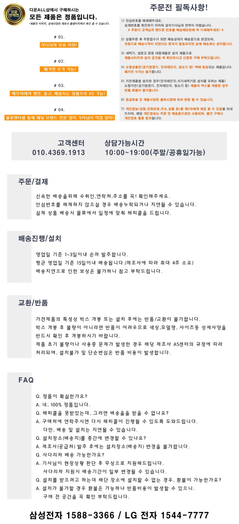 - ㆍ제조사의 사정 (신모델 출시 등) 및 부품 가격 변동 등에 의해 무료 교환/반품으로 요청하는 경우